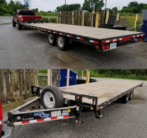With an electric winch on the trailers it makes them easier than ever to load. These are heavy duty trailers and some are capable of hauling loads of 10000 pounds. 20 Trailer has 18 Tilting Deck w2 Stationary Deck at Front.